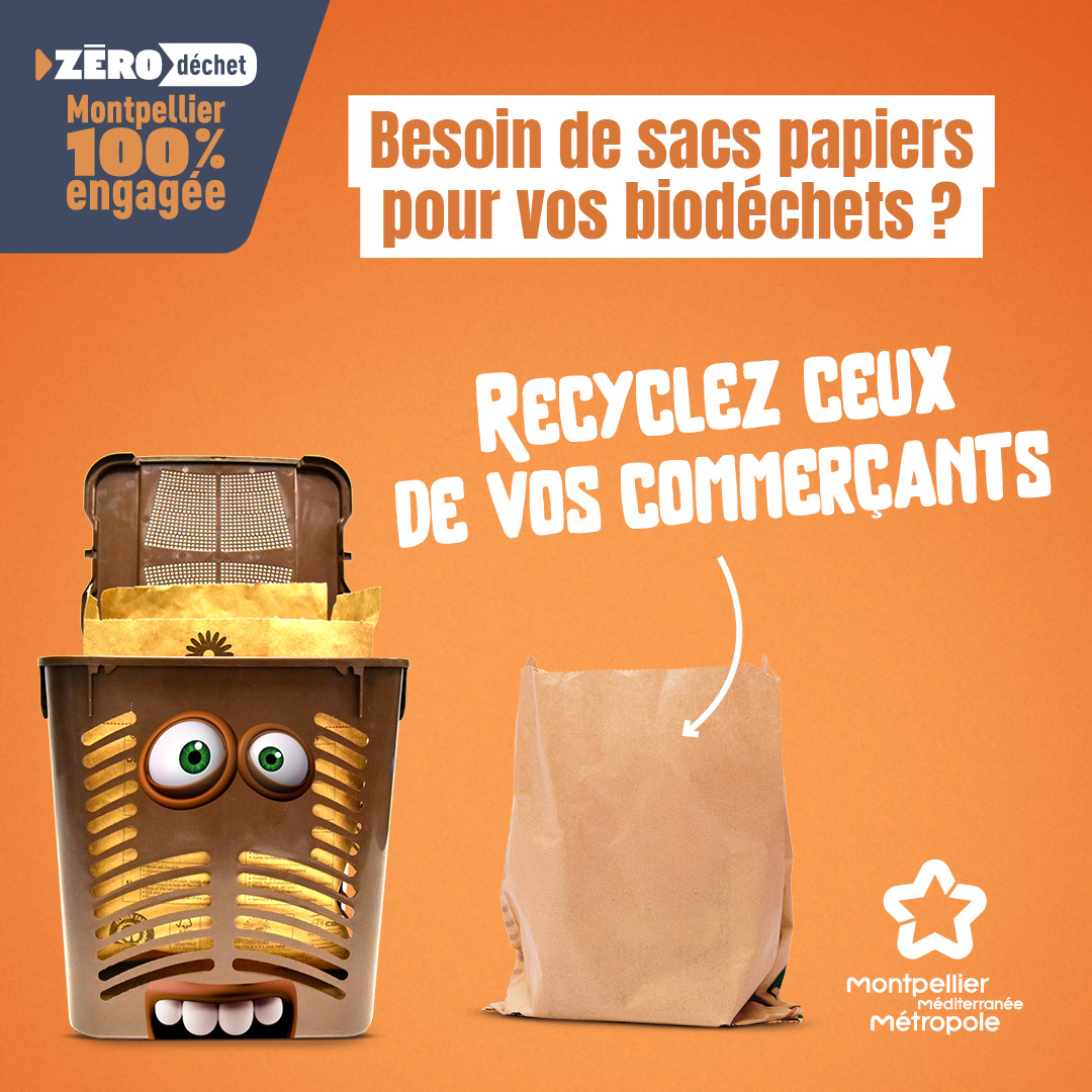 Une fois les 40 sacs krafts de la dotation de départ épuisée, vous pouvez recycler les sacs des commerçants (primeur, supermarché…)