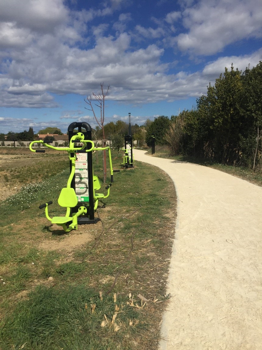 Un parcours de santé, créé en 2020, situé dans la coulée verte, à la ZAC des Ecrins.