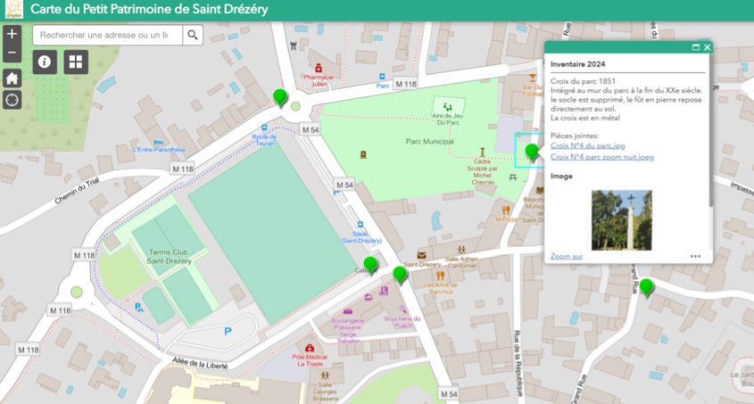 Exemple de cartographie présentant l’emplacement et les photos du patrimoine de Saint-Drézéry